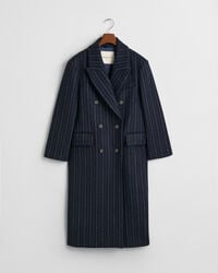 Está confeccionado en una mezcla de lana italiana con forro de viscosa certificada y un estampado clásico de raya diplomática. Presenta corte holgado y silueta entallada clásica con largo hasta la pantorrilla. También cuenta con solapas con muesca, una abertura posterior, bolsillos laterales con solapa y vivos, y un bolsillo con ribete en el pecho. Esta prenda está diseñada con corte holgado. Si deseas un corte más ajustado, te recomendamos escoger una talla menos.