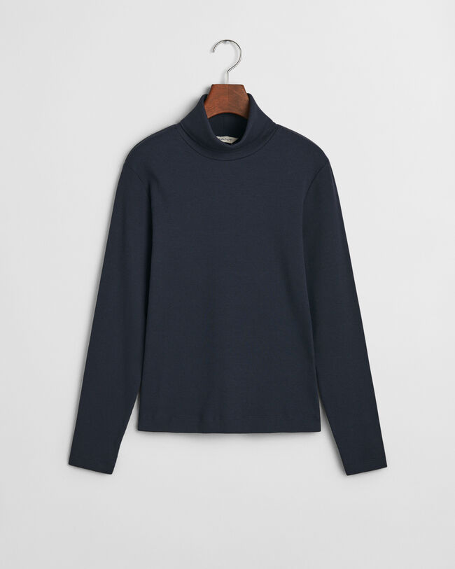 Esta camiseta de manga larga está confeccionada en una suave mezcla de algodón con corte normal. Se ha diseñado con cuello de cisne clásico, detalles de doble puntada en los puños y el bajo, y el logotipo GANT del mismo tono bordado en el pecho.