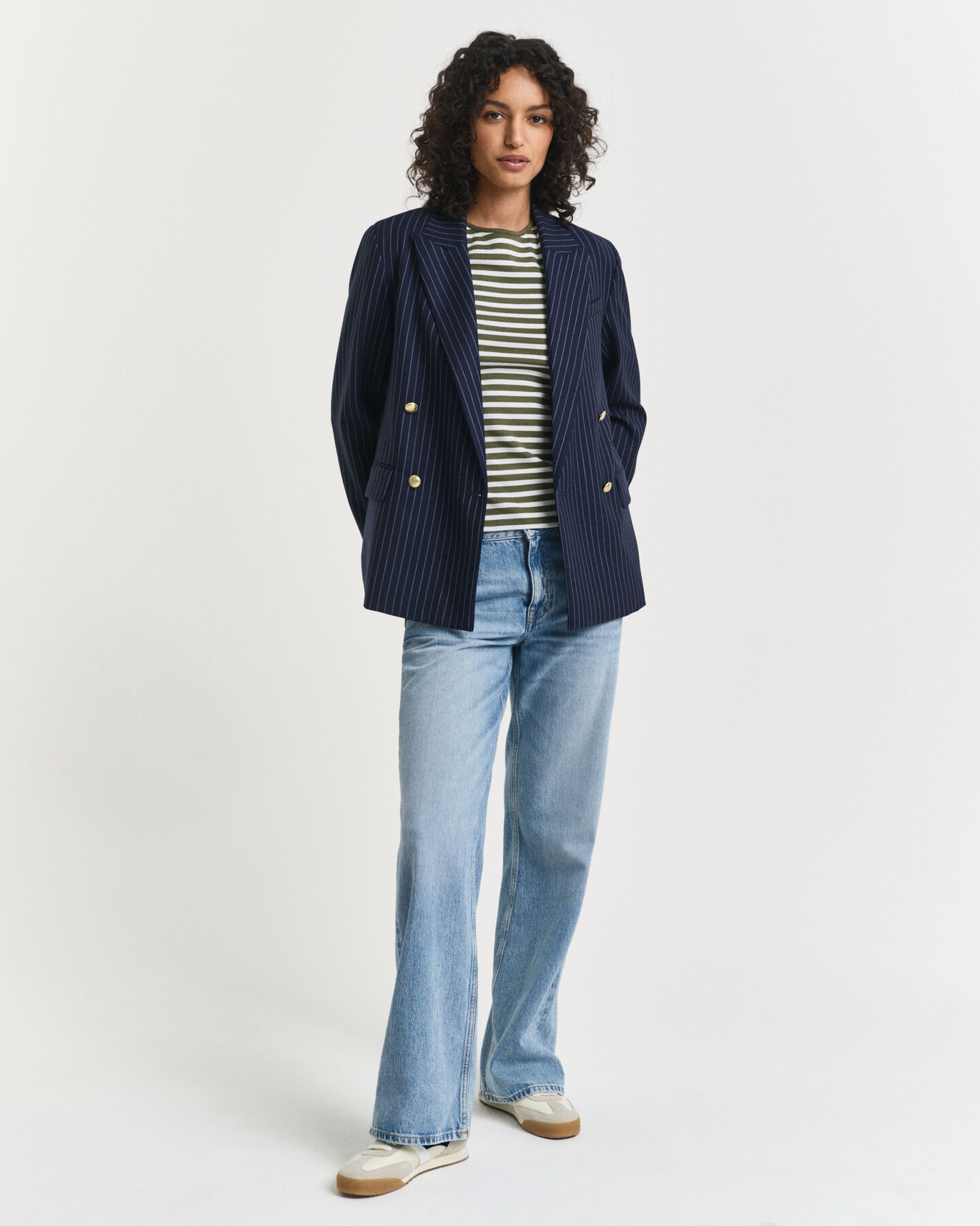 Esta camiseta de cuello redondo, confeccionada en una suave mezcla de algodón muy elástica, es perfecta para cualquier temporada. Luce corte estilizado y presenta un estampado integral de rayas bretonas y el logotipo GANT bordado en la manga.