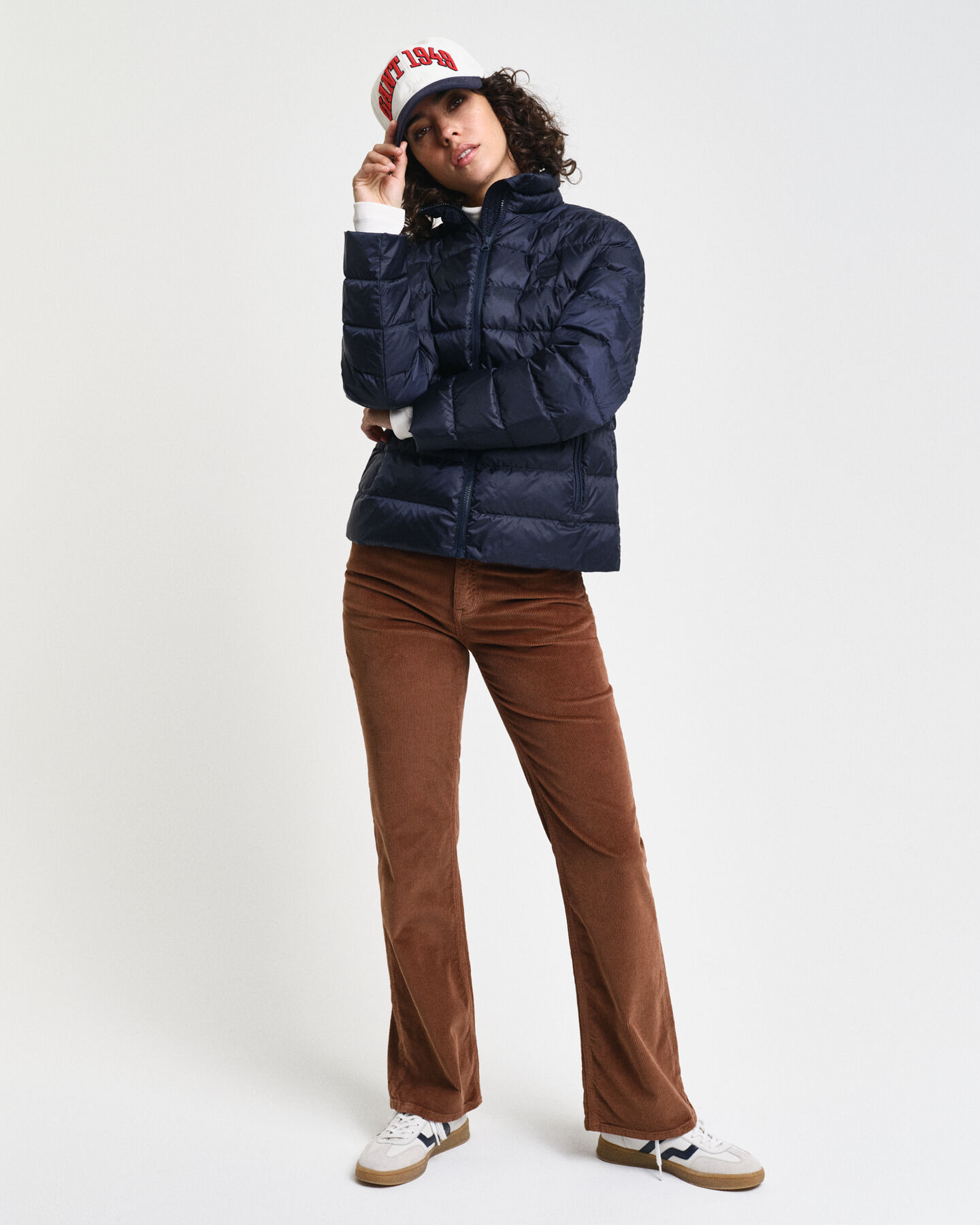 Esta chaqueta acolchada con un 90% de plumón y un 10% de pluma, está confeccionada en un poliéster reciclado certificado y muy ligero. Se trata de una prenda cómoda para llevar durante todo el año, gracias a la capa exterior acolchada de líneas rectas con acabado resistente al agua. Presenta corte holgado hasta la cadera, cuello recto, cierre de cremallera en la parte delantera, bolsillos laterales con cremallera y etiqueta con el logotipo tejido en el pecho. Esta prenda está diseñada con corte holgado. Si deseas un corte más ajustado, te recomendamos escoger una talla menos. Se ha sometido a un tratamiento Durable Water Repellent (DWR) que hace que la prenda sea resistente al agua ante las suaves lluvias de entretiempo. Si te pilla un chaparrón inesperado, sigue al pie de la letra las instrucciones de cuidado para restaurar su rendimiento y prolongar la vida útil de la prenda. Cuenta con plumón con capacidad de relleno de 650 y un aislamiento ligero.