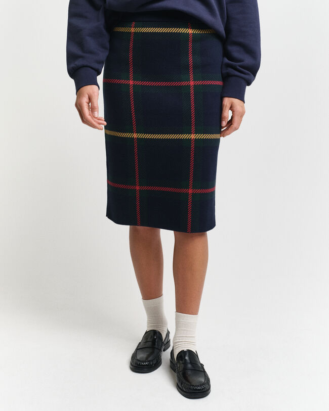 Esta falda midi está confeccionada en algodón fino y suave con silueta de tubo estilizada. Los cuadros de tela escocesa en punto de jacquard aportan un inconfundible estilo «preppy», mientras que la cinturilla elástica acanalada la hace muy cómoda.