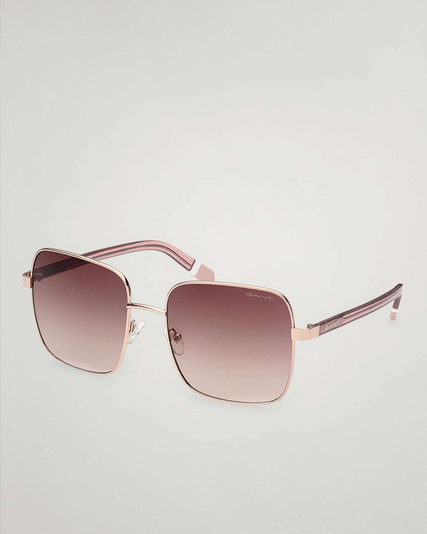 Las gafas de sol Ellie GA8085 están diseñadas con lentes cuadradas de estilo retro para ofrecer un glamour atemporal. Presentan frente metálico, patillas de acetato con terminales en bloques de color y logotipo Diamond G en las patillas. Vienen protegidas en una funda con el logotipo GANT en relieve.