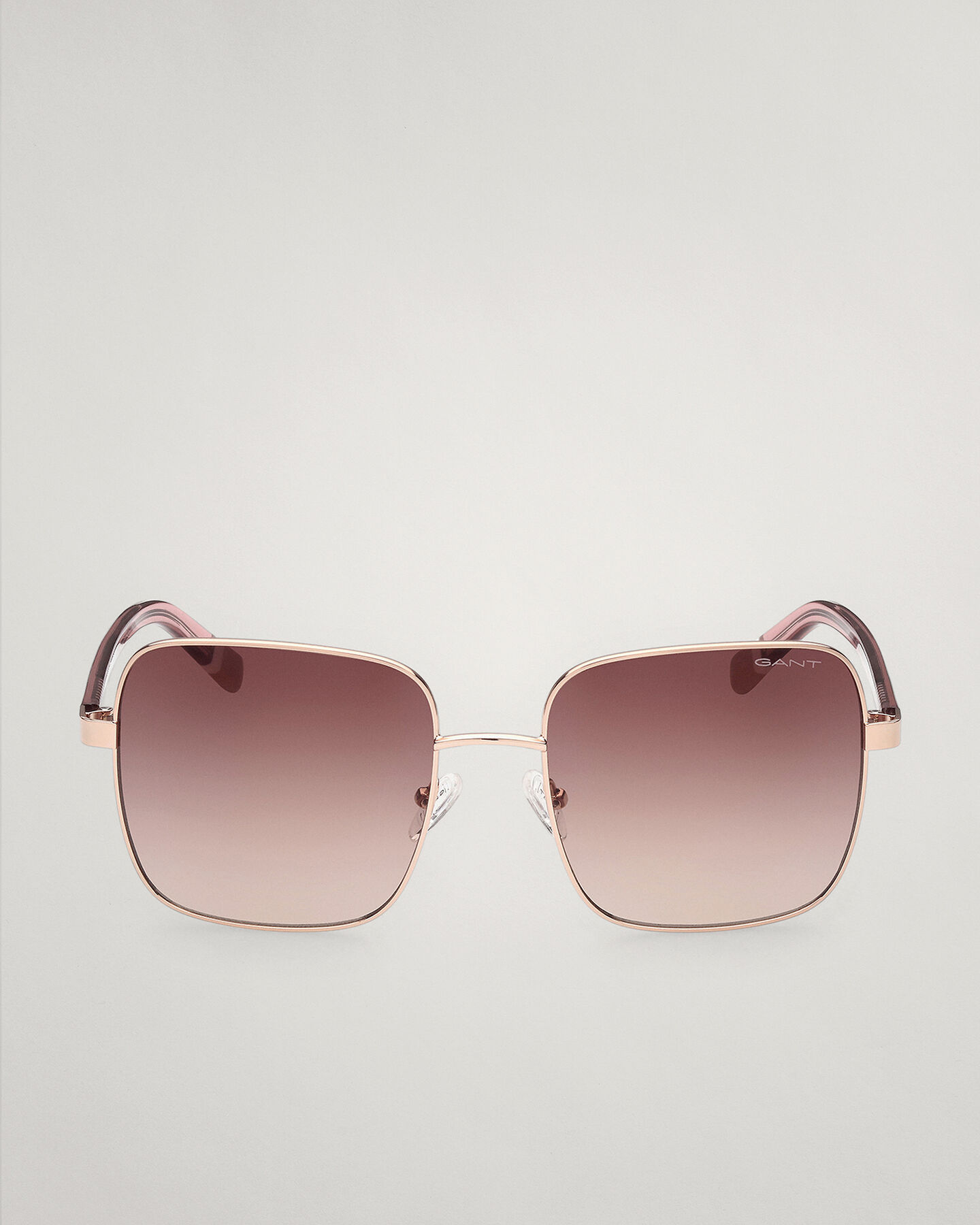 Las gafas de sol Ellie GA8085 están diseñadas con lentes cuadradas de estilo retro para ofrecer un glamour atemporal. Presentan frente metálico, patillas de acetato con terminales en bloques de color y logotipo Diamond G en las patillas. Vienen protegidas en una funda con el logotipo GANT en relieve.