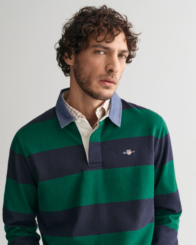 Este Rugger de rayas confeccionado en 100% algodón y con corte normal luce una insignia GANT de pequeñas dimensiones bordada en el pecho. Se trata de una prenda atemporal, clásica y versátil con cuello de cambray y tapeta clásica de tres botones.
