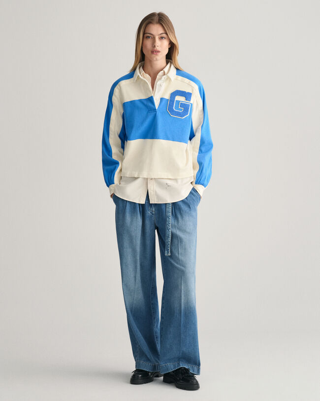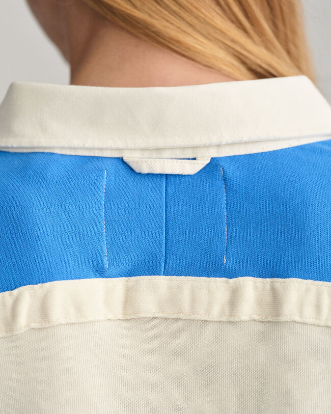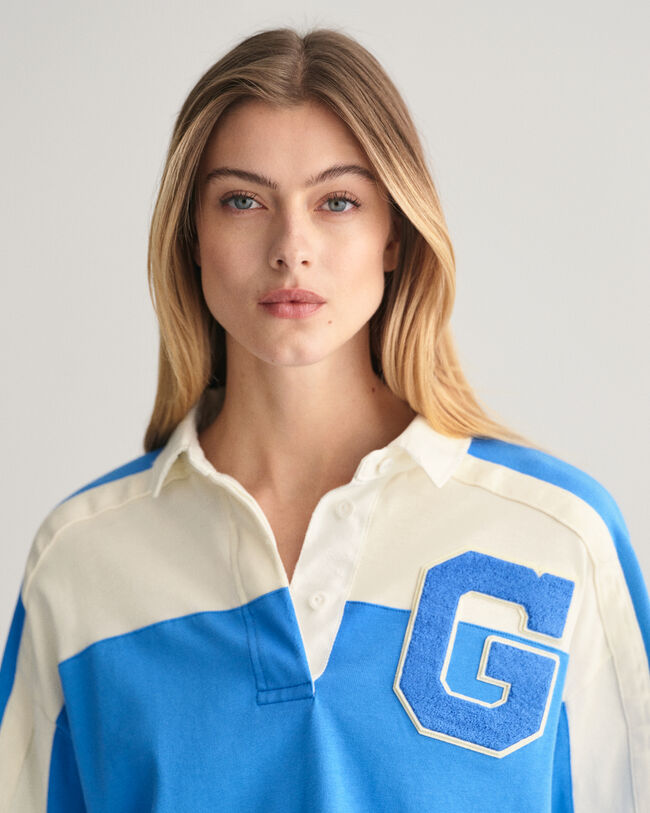 Esta prenda forma parte de nuestra colección de primera calidad: GANT 240 Mulberry Street. Esta nueva línea rinde homenaje a nuestra historia como pioneros del estilo American Sportswear al tomar las prendas «preppy» clásicas y reinventarlas con nuevas siluetas confeccionadas con los mejores tejidos. Este Rugger de corte holgado está confeccionado en 100% algodón y cuenta con un cuello tipo Rugger auténtico y un lavado marcado para conferirle un aspecto vintage. Se ha diseñado con cuerpo más corto y mangas con volumen para conseguir una silueta más dinámica. Además, incorpora bloques con color en contraste de inspiración universitaria en el pecho y las mangas, y una insignia G de rizo también en el pecho. Esta prenda está diseñada con corte holgado. Si deseas un corte más ajustado, te recomendamos escoger una talla menos.