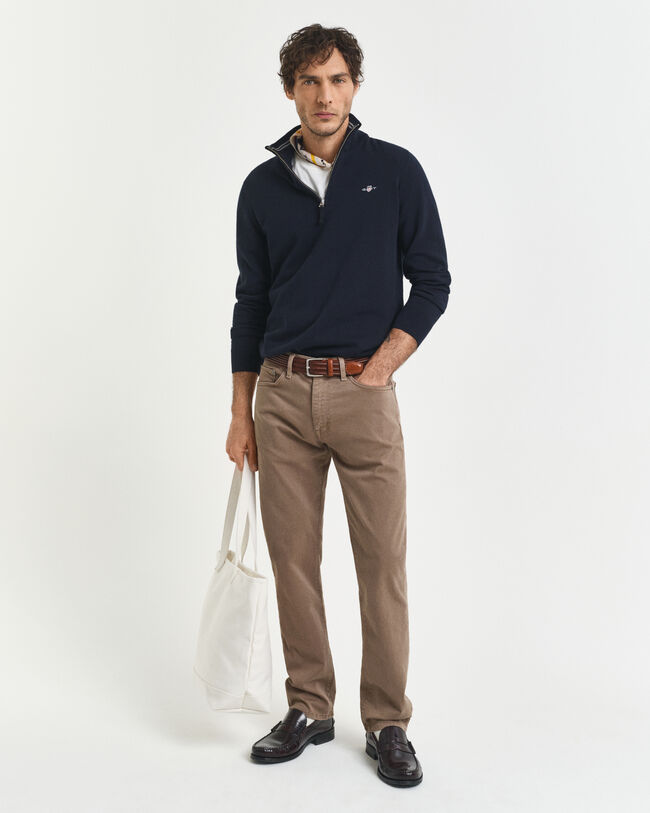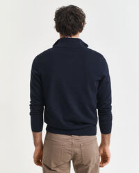 Este jersey, confeccionado en algodón con corte normal, presenta cuello con media cremallera, detalles acanalados y la insignia Gant bordada en el pecho.