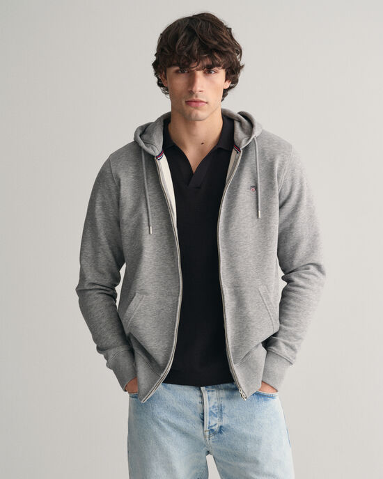 Esta sudadera con capucha está confeccionada con corte normal para un aspecto más sofisticado y presenta una insignia de pequeñas dimensiones bordada en el pecho. El diseño cuenta con bolsillo delantero y ojales plateados para el cordón ajustable.