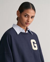 Esta sudadera con cuello redondo es perfecta para pasar el día en casa o para no parar en todo el día. Está confeccionada en una mezcla de algodón muy cómoda y suave con corte extragrande. Presenta bajo, cuello y puños acanalados y una insignia G de rizo bordada en el pecho. Esta prenda está diseñada con corte extragrande. Si deseas un corte más ajustado, te recomendamos escoger una talla menos.